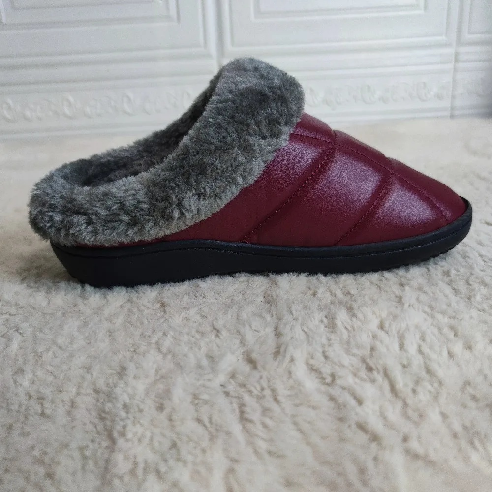 Anti-slip Solid Color Home Warm Plush Slippers For Women Comfortable Flat Soft Fur Plush Ladies Slippers