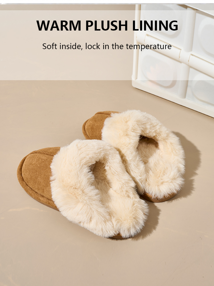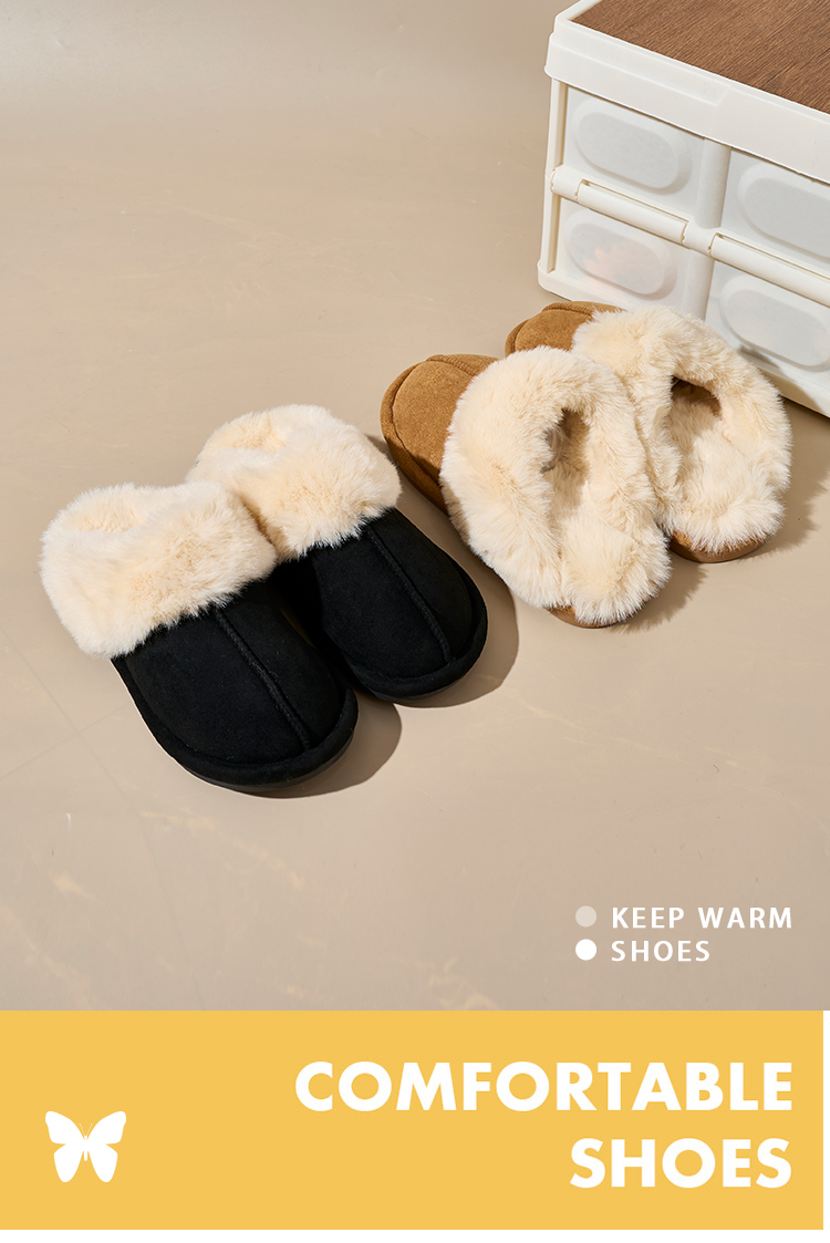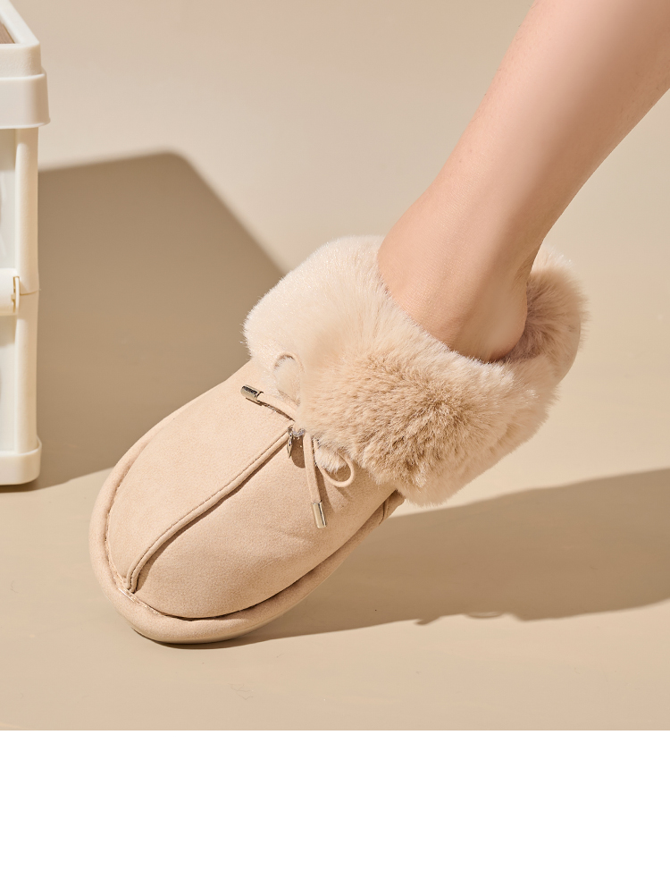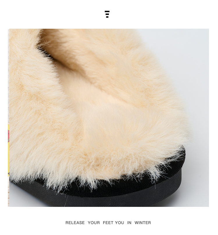Bairuilun Can Customize Winter Thin-sole Closed Toe Warm Slippers Furry Heating Slip-on Snow Boots For Ladies Girls