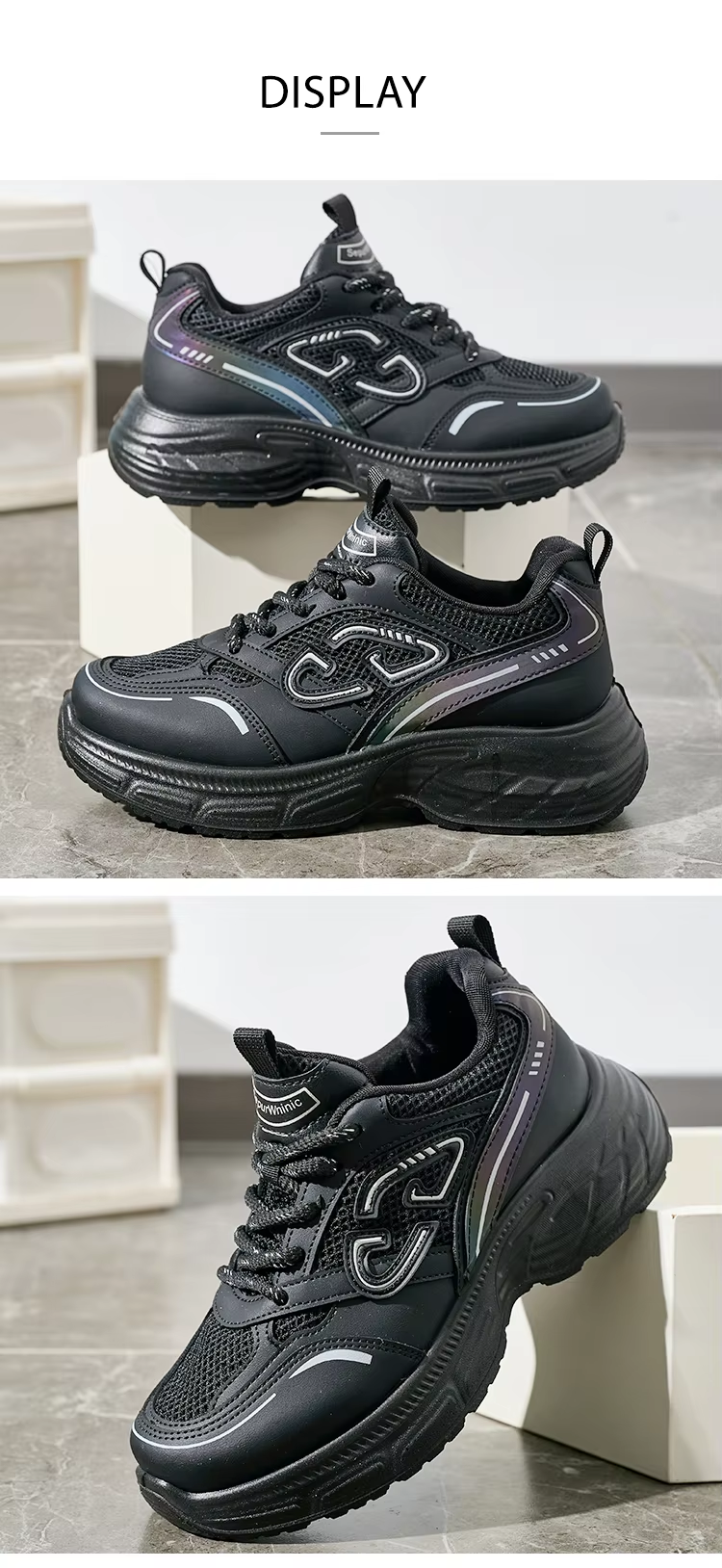 • Bairuilun Womens Breathable Mesh Walking Thick Outsole Sneakers Fashion Cushioning Women Casual Shoes Support OEM/ODM