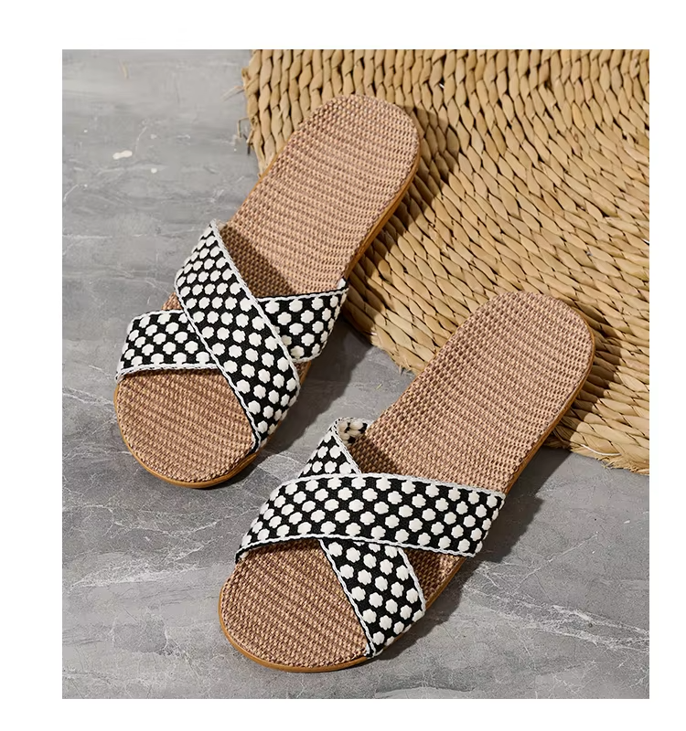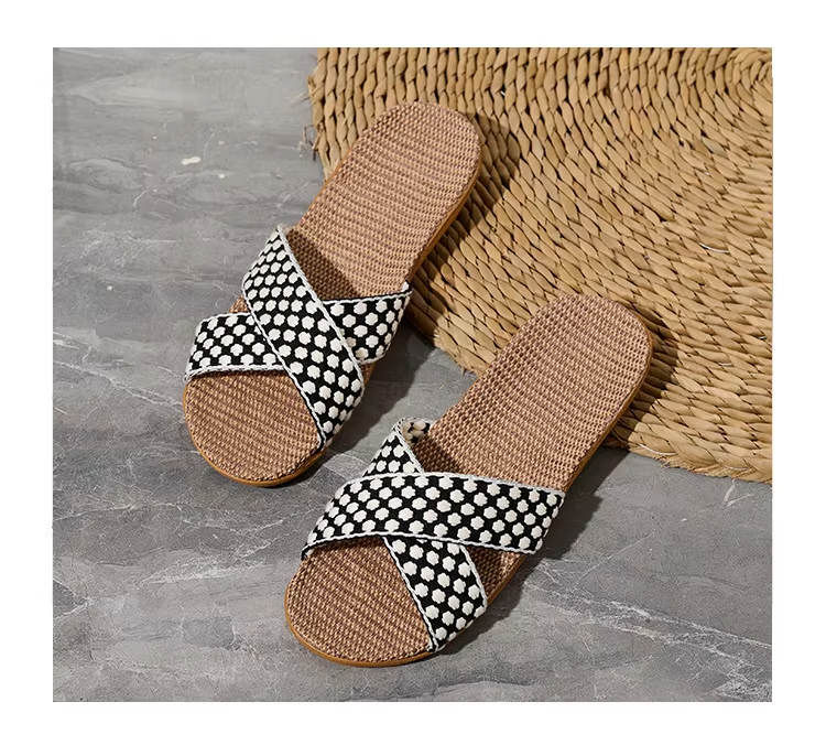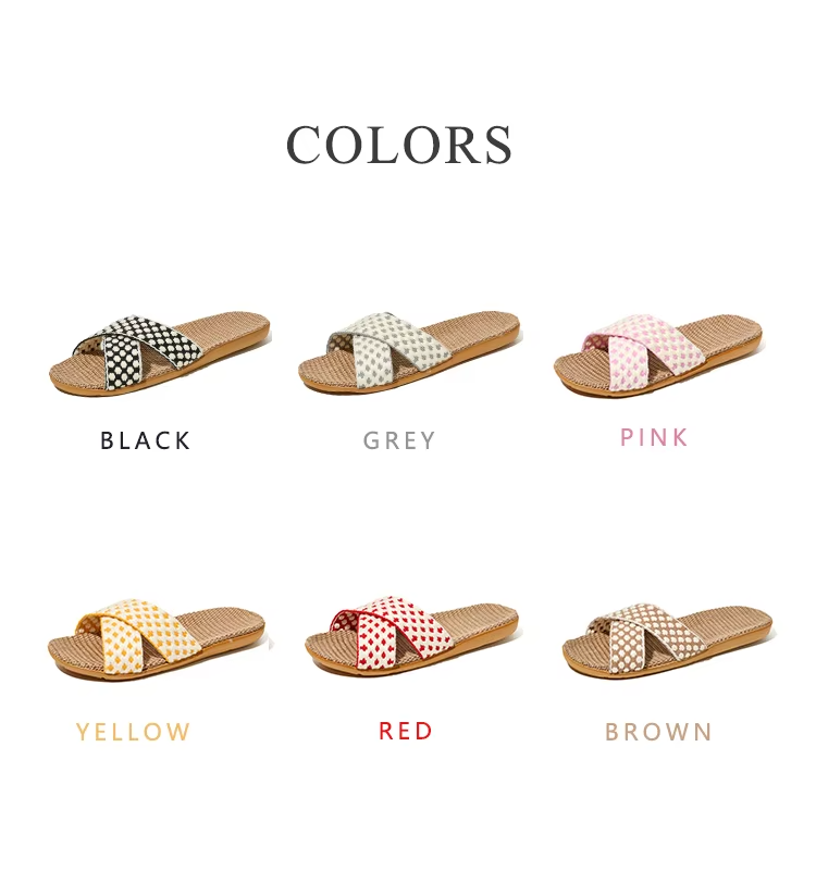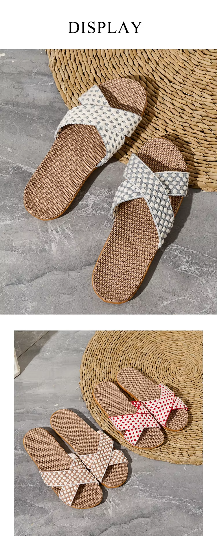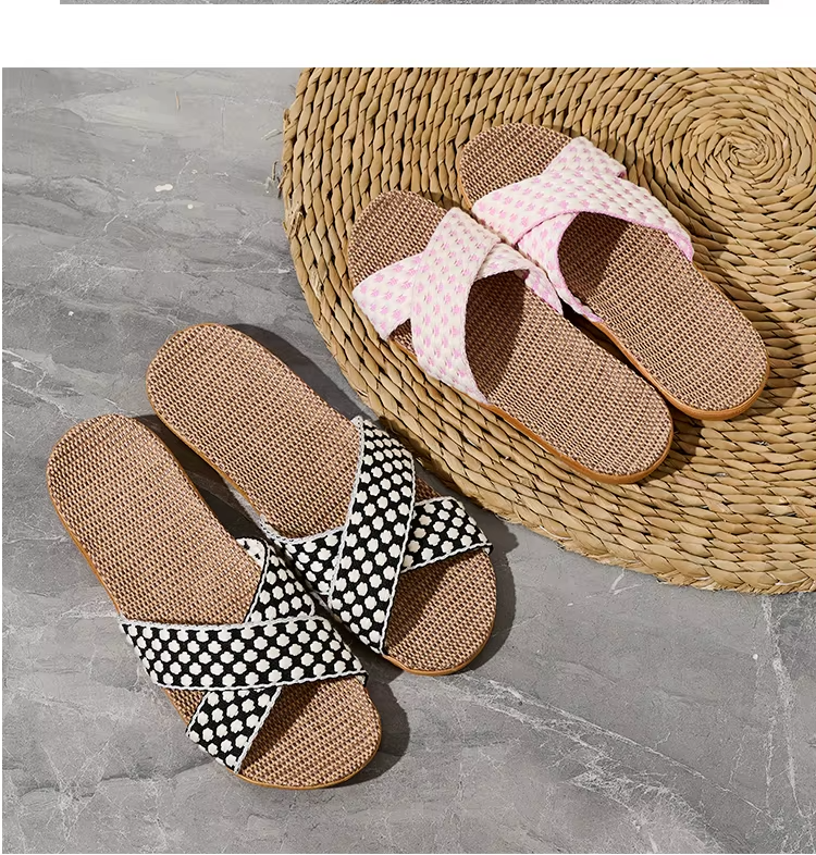 Custom Lady Woman Linen Slippers Sandals Fashion Fish-Mouth Home Slippers Couples Colorful Cross-strap Linen Slippers