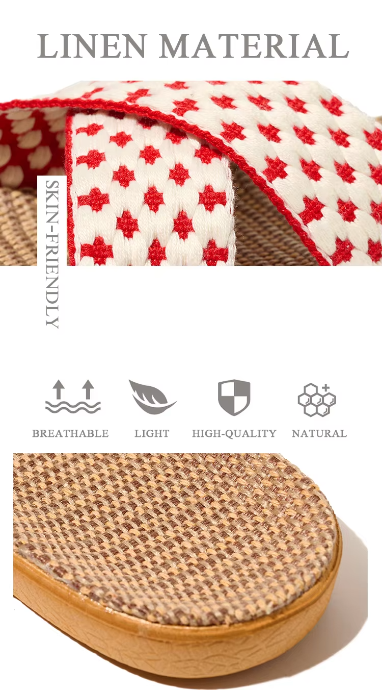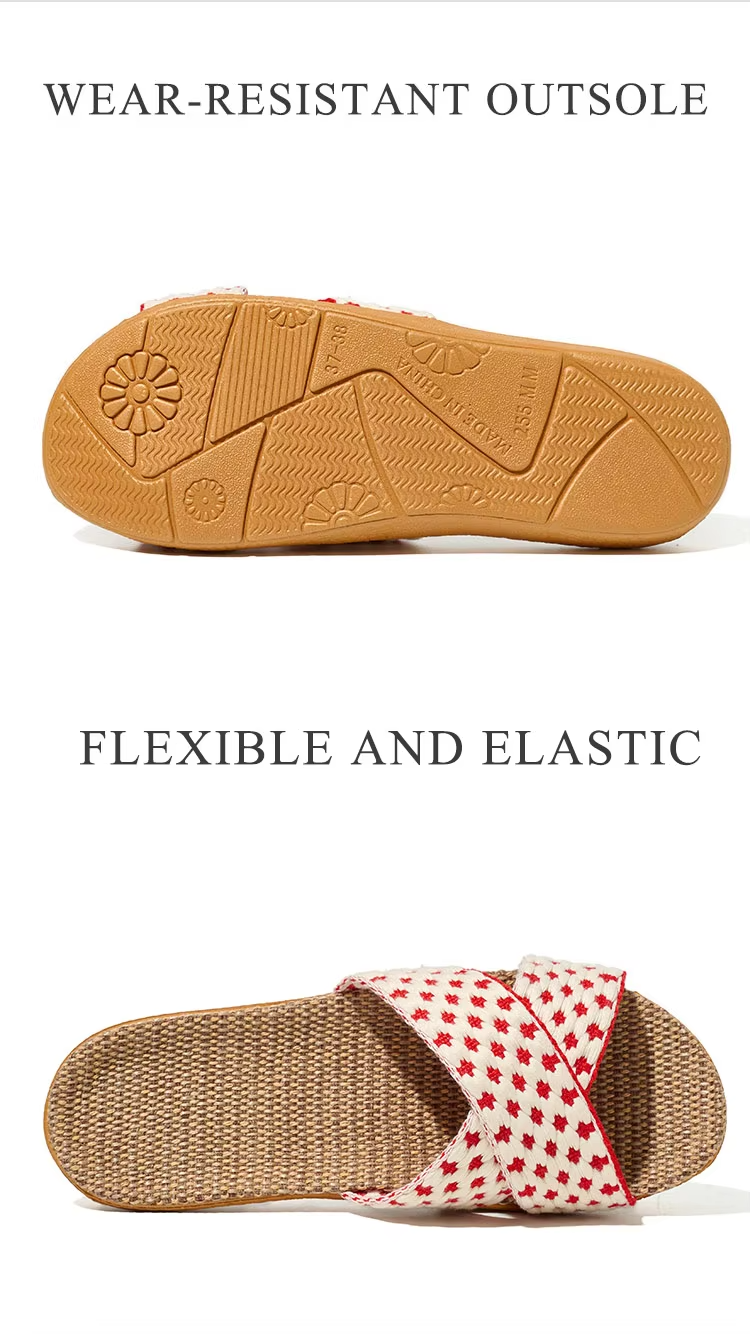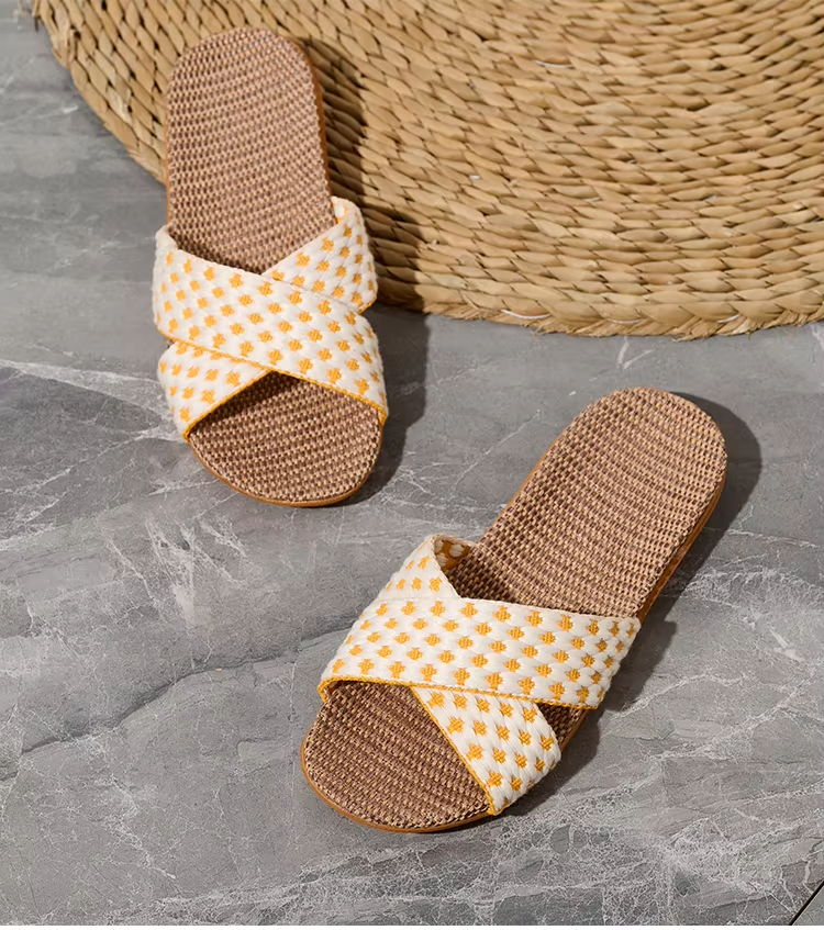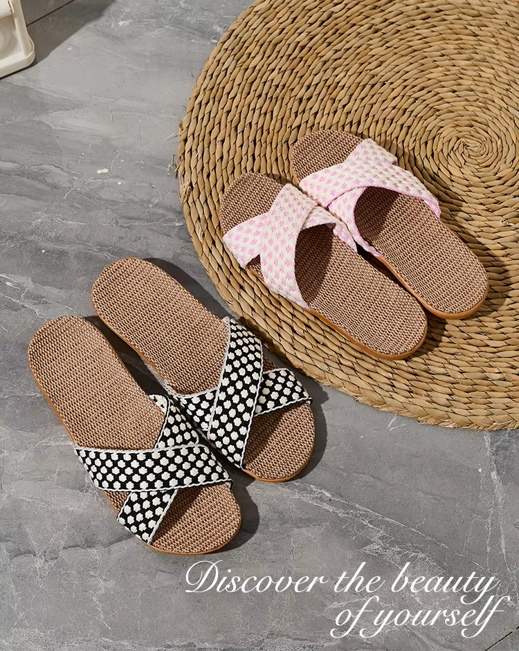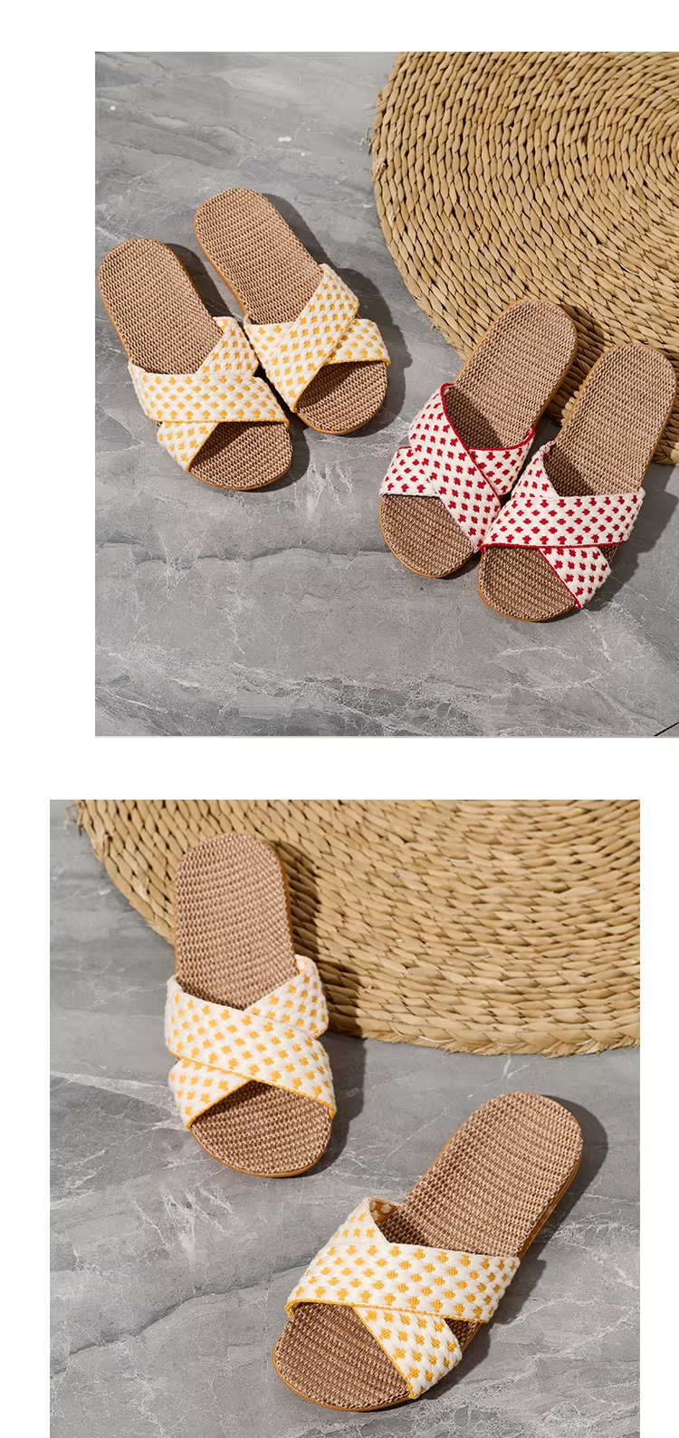 Custom Lady Woman Linen Slippers Sandals Fashion Fish-Mouth Home Slippers Couples Colorful Cross-strap Linen Slippers