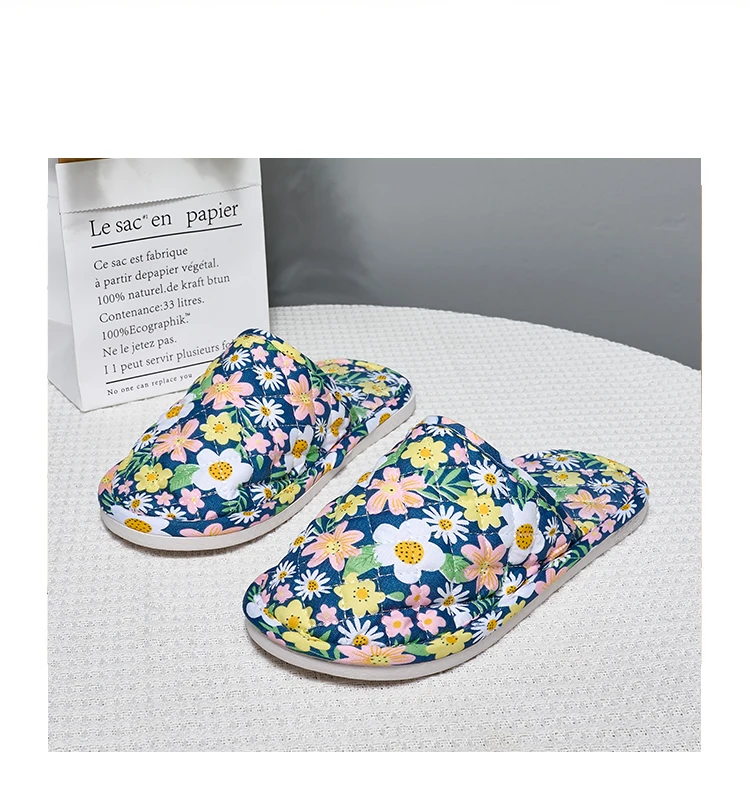 Fashion Cotton Fabric Thermal Comfortable Home Slippers Wholesale Quiet And Comfortable Indoor Couple Slippers