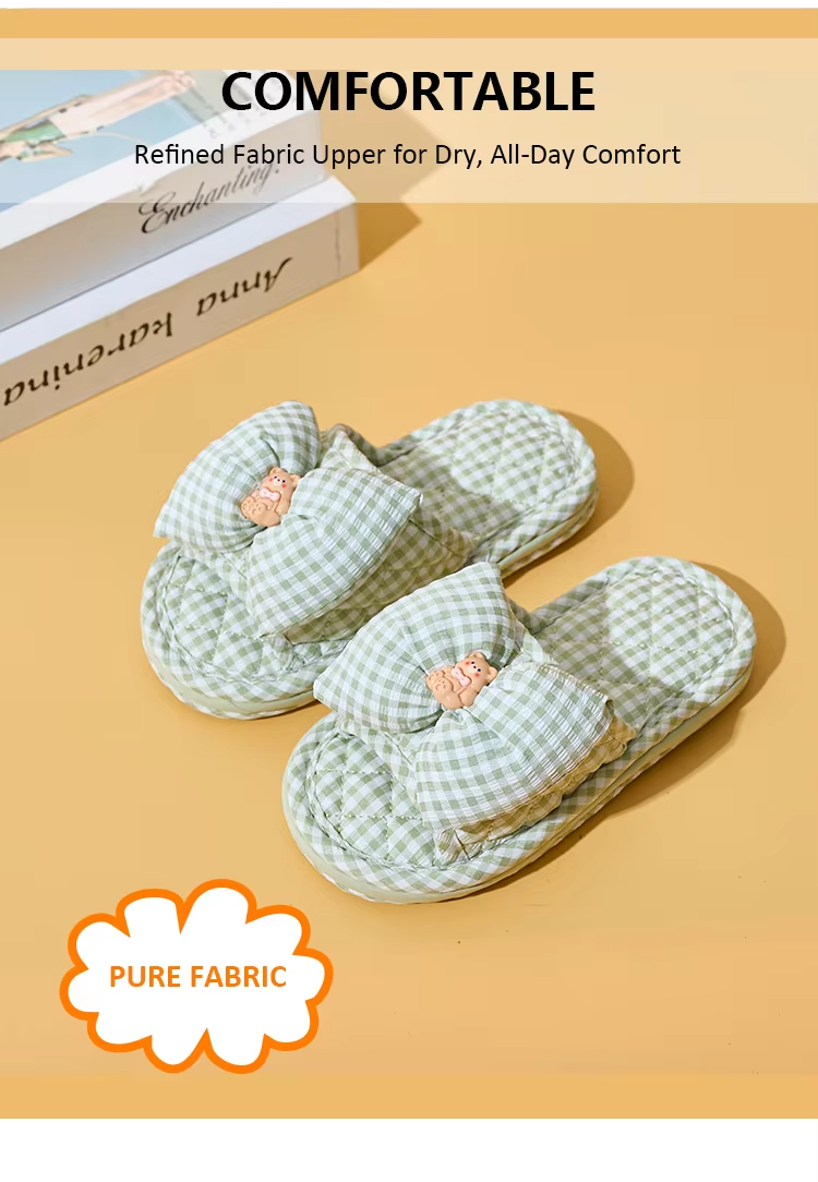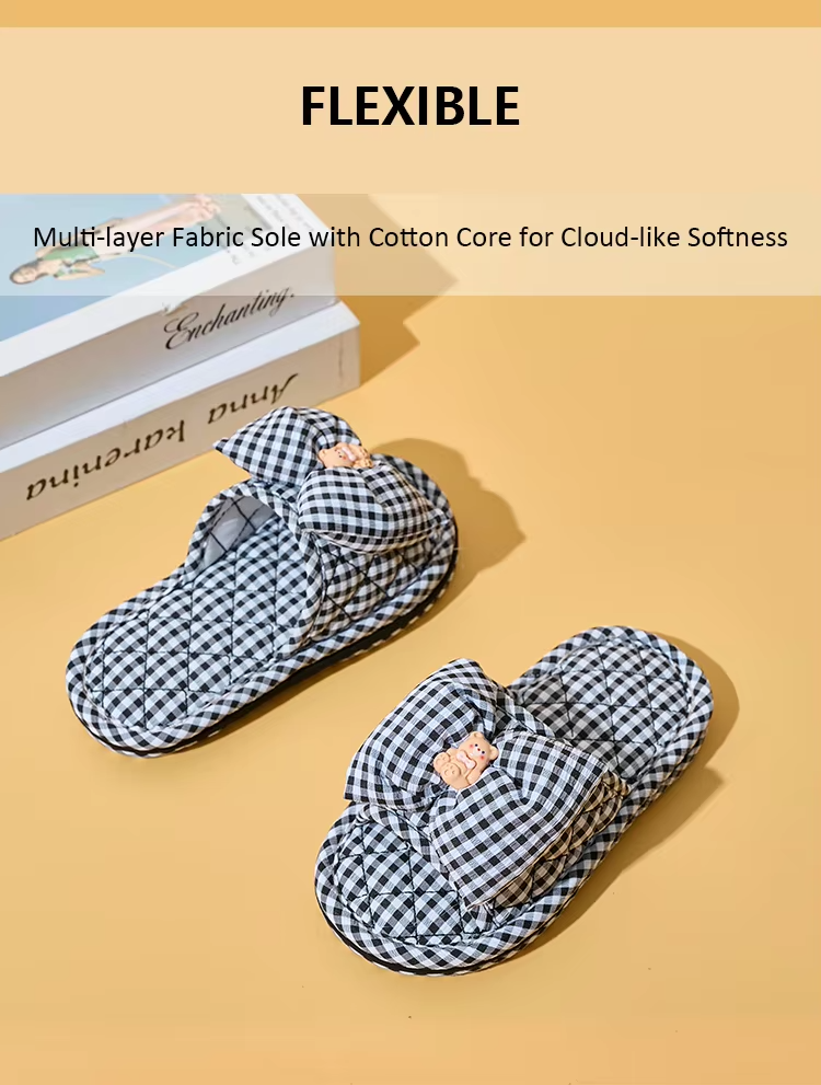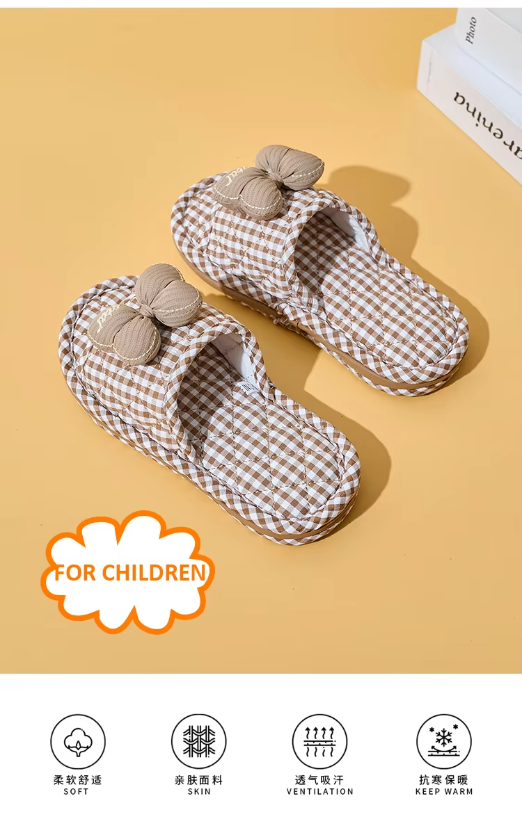 • Kids Triple-Layer Thickened Fabric House Slippers Breathable & Silent Soft Sole Machine Washable Korean Style Baby Slippers