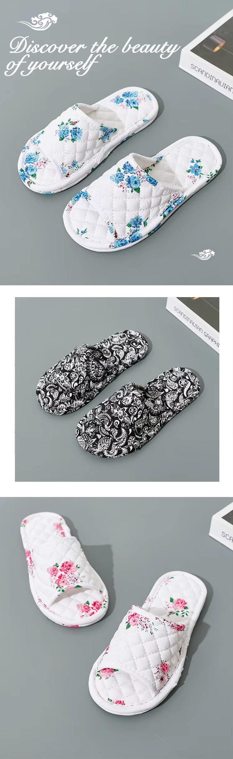 • New Comfortable Seasons Household Unisex Floor Slippers Home Slippers Lightweight Breathable National Style Fabric Slippers