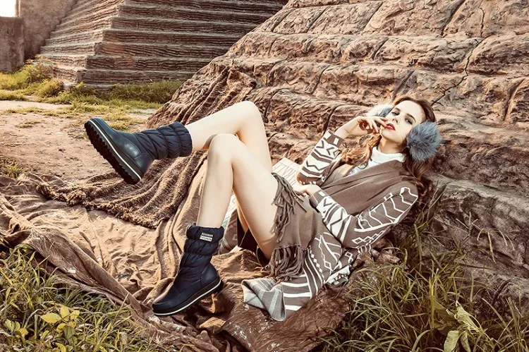 New Fall Winter Wholesale Knee Large-Size 44 Snow Boots For Women Wedge Heel Waterproof Plush Lady Snow Boots