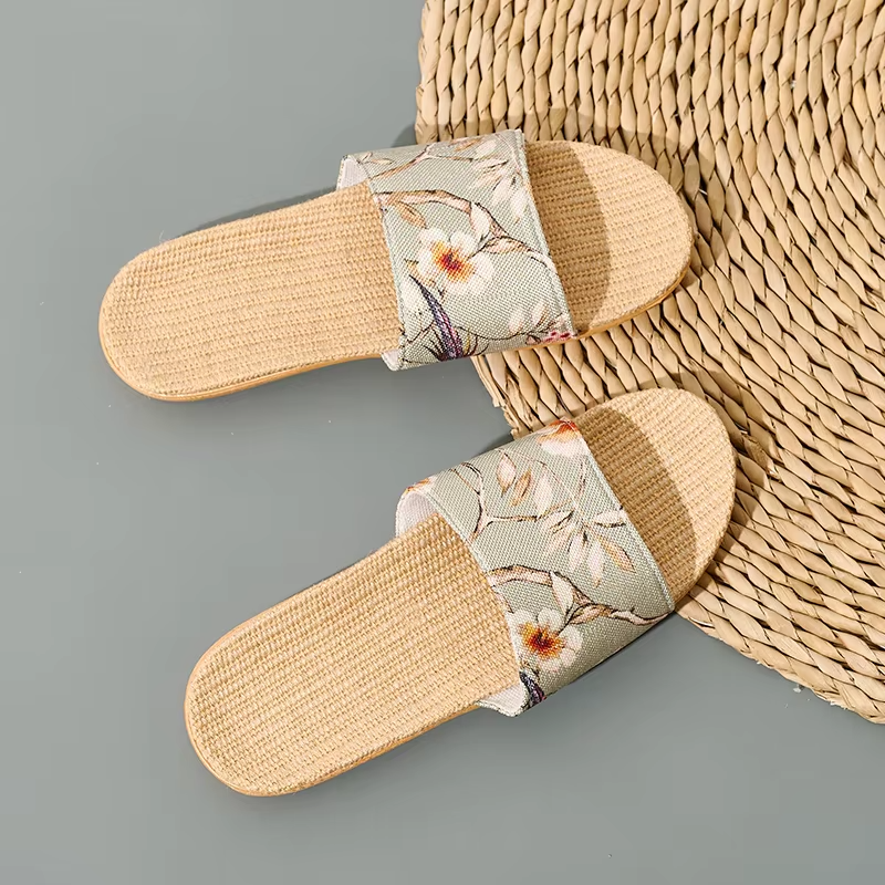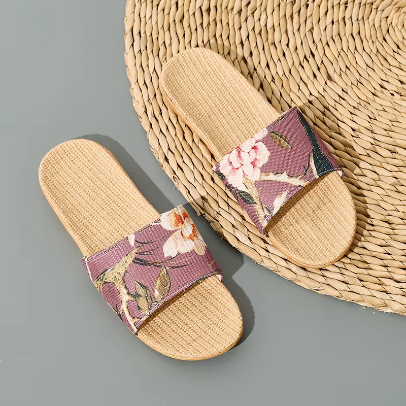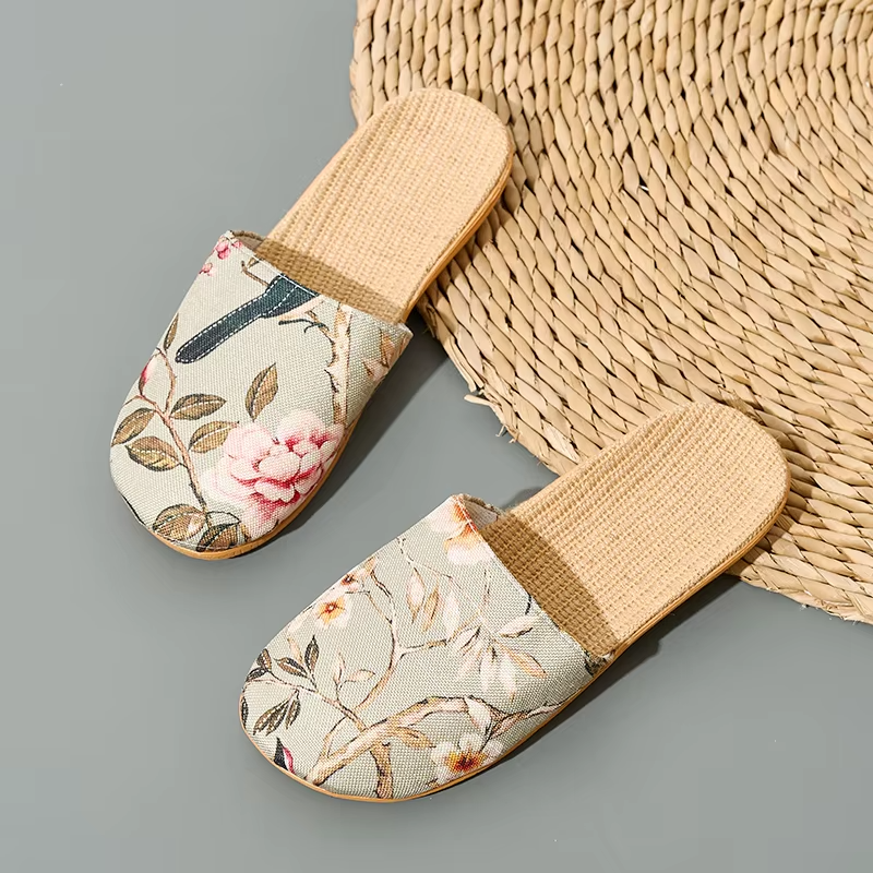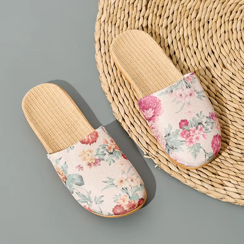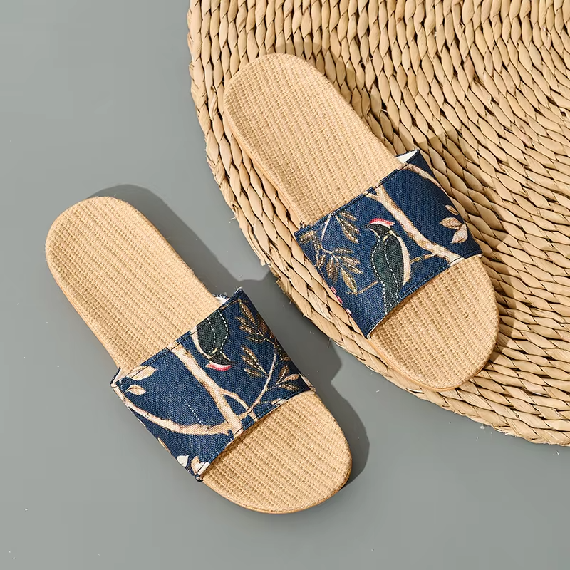 Summer Cool Moisture-Wicking Linen Blend Indoor Slippers Odor-Resistant Lightweight House Shoes for Small Batch Customization