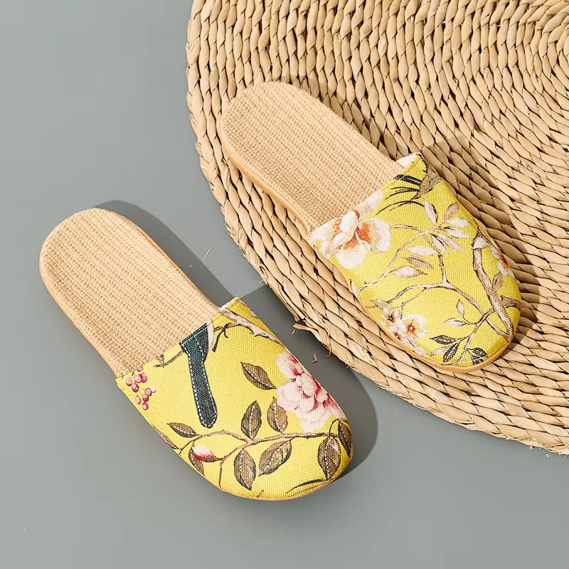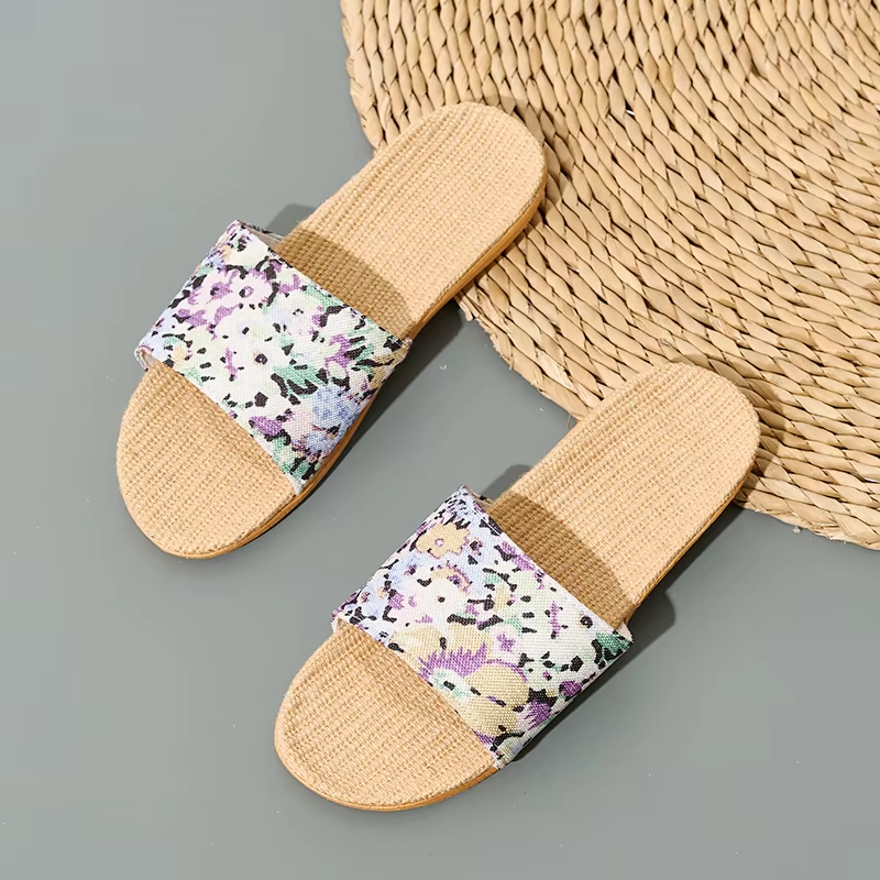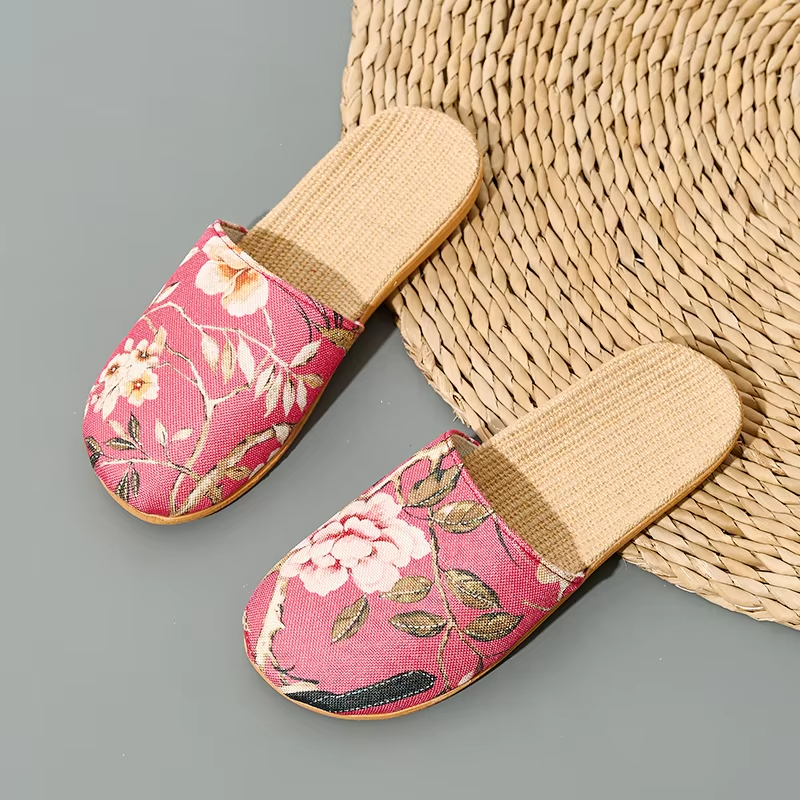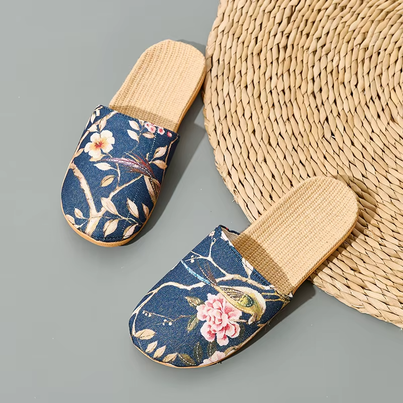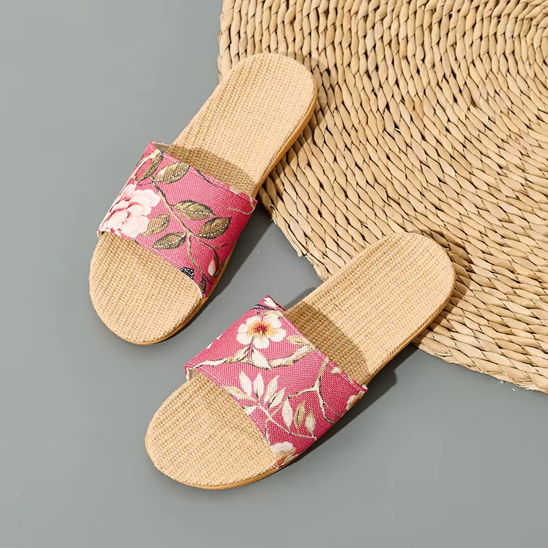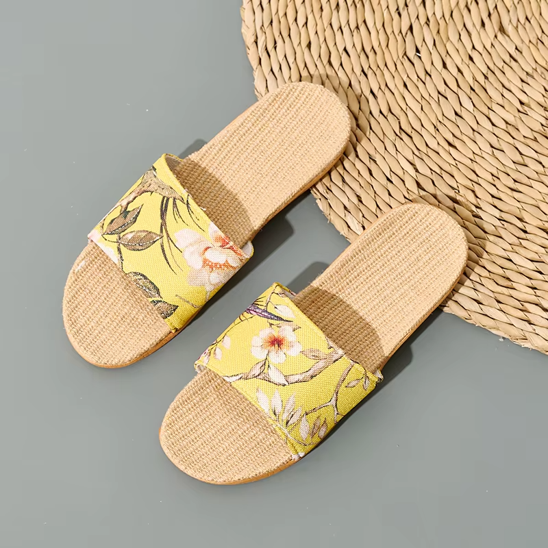 Summer Cool Moisture-Wicking Linen Blend Indoor Slippers Odor-Resistant Lightweight House Shoes for Small Batch Customization