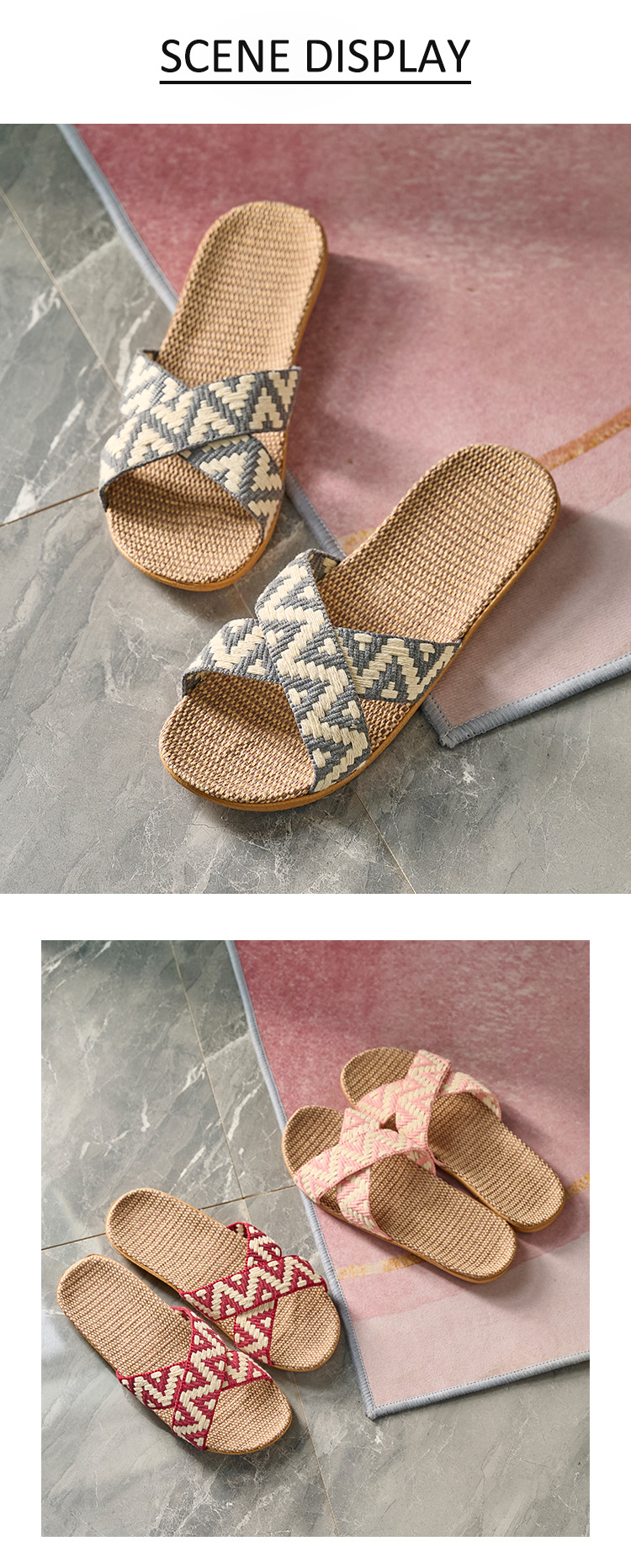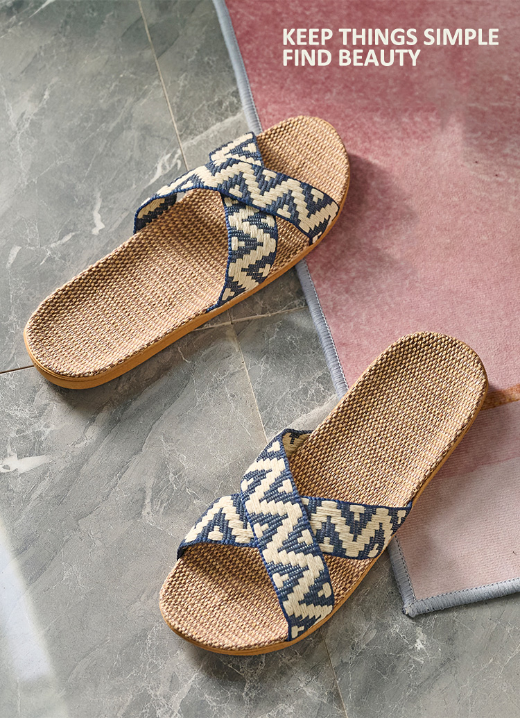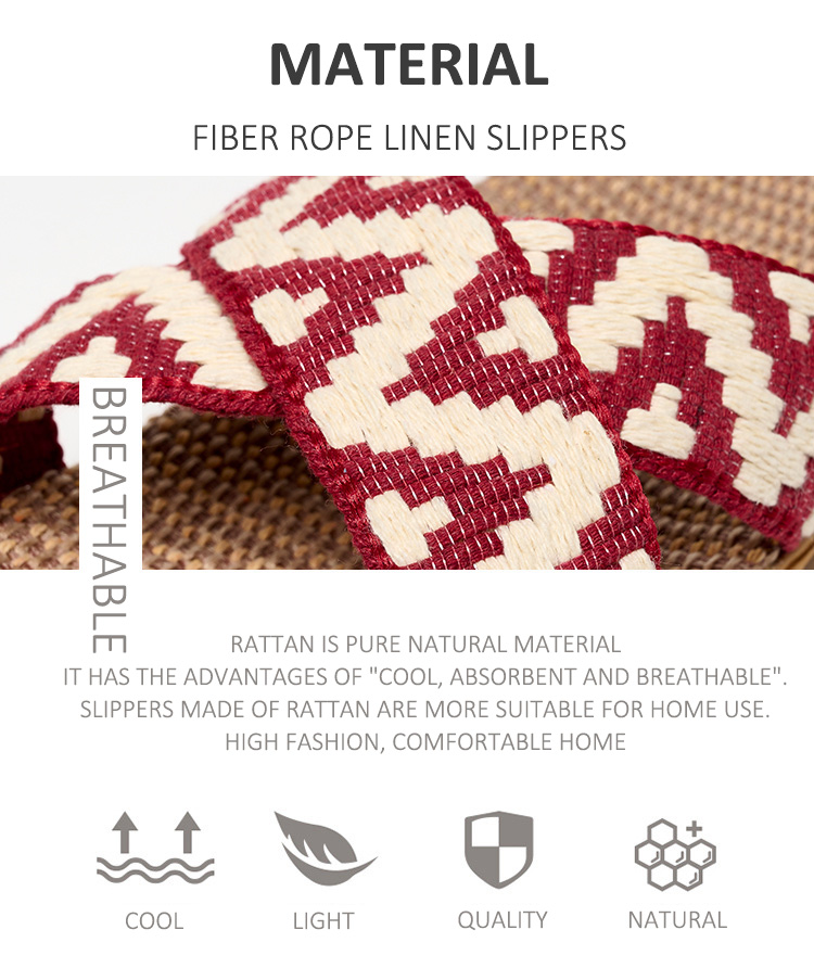 Trendy Home Wooden Floor Silent Rattan Slippers Wholesale Summer Living Room Sandals Woven Thick Sole Slippers