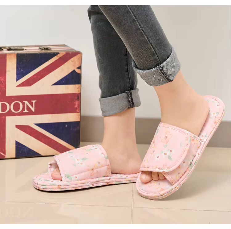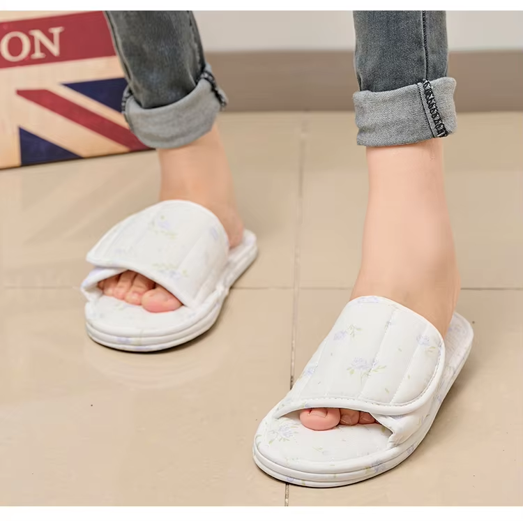 Ultralight Soft Indoor Open Toe Machine Washable Cotton Fabric Slippers Absorb Sweat Cloth Bottom House Slippers Wholesale