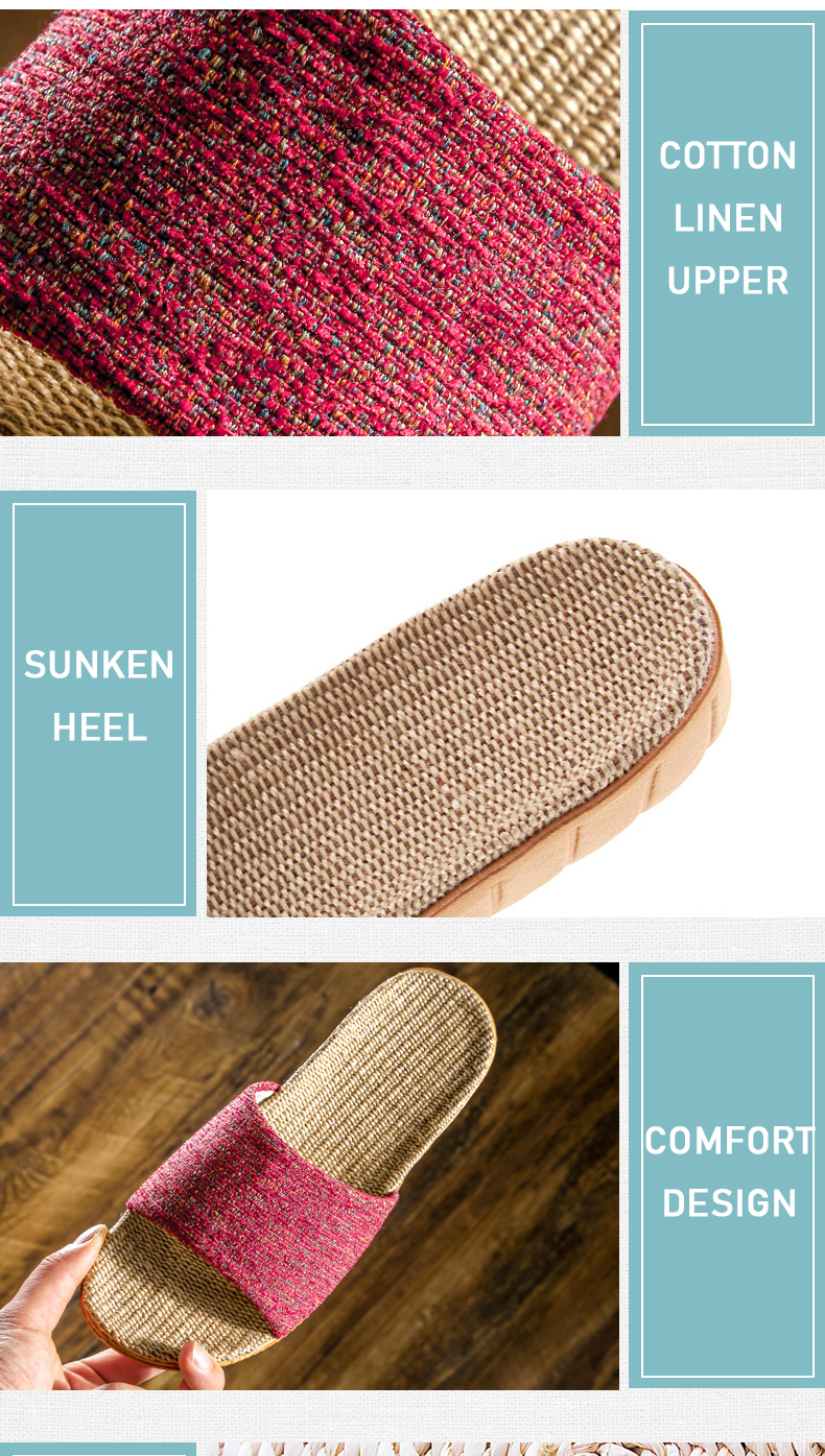Wholesale Couple Large Size Indoor Slippers Wooden Floor Cotton Linen Slippers Home Non-slip Men And Women Linen Slippers