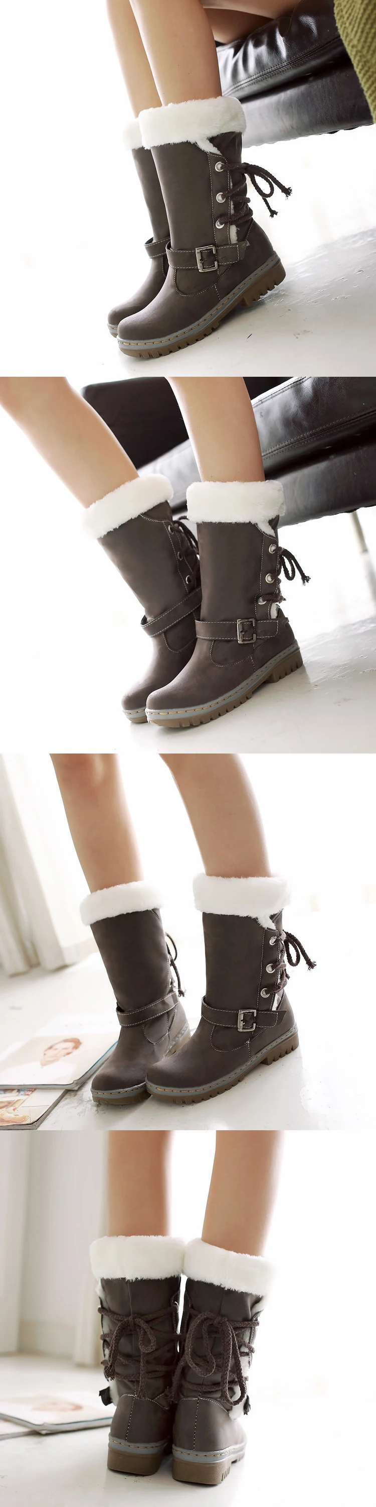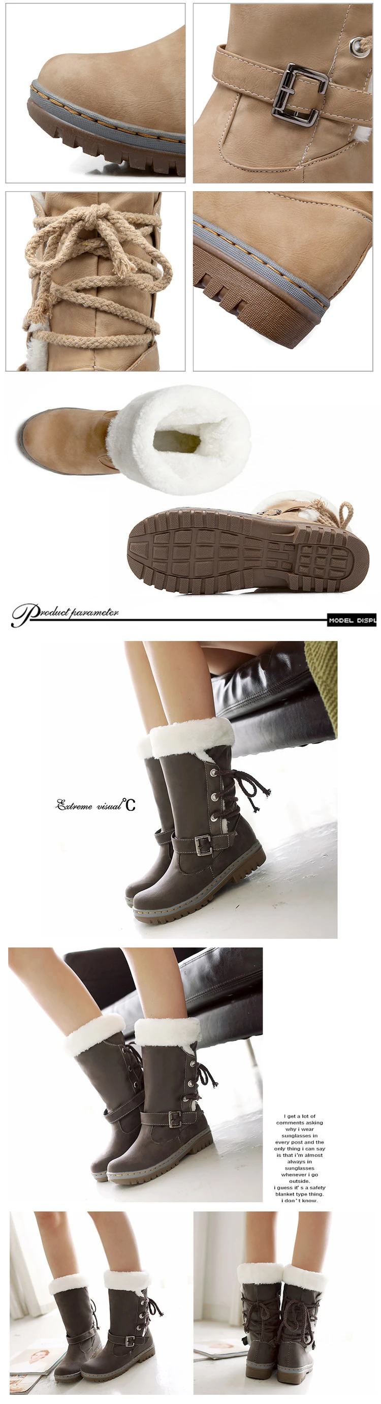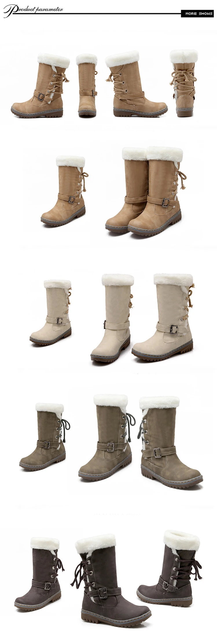 Wholesale Hot Sale Round Toe Snow Boots For Women Fashion High Quality Plus-Size Thick Warm Female Lace-Up Winter Knee Boots
