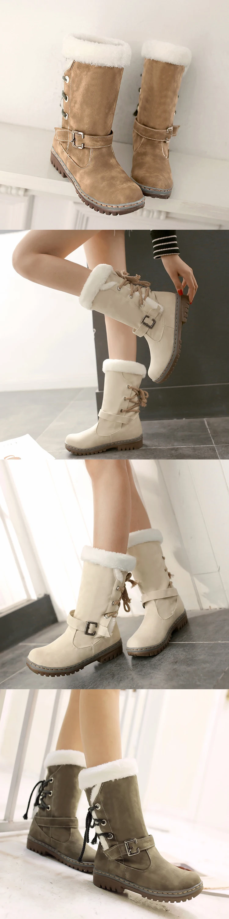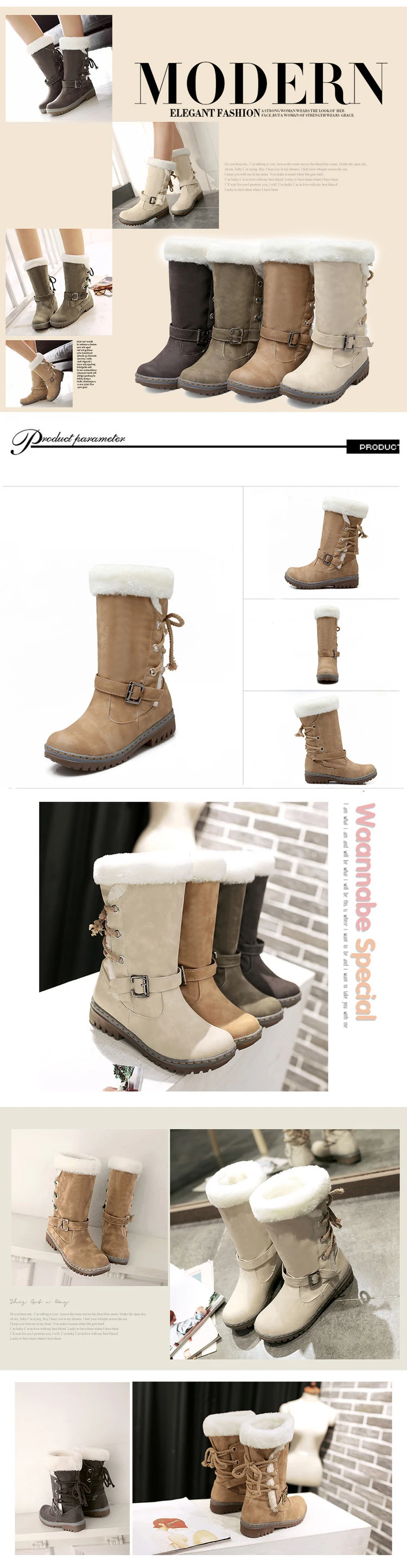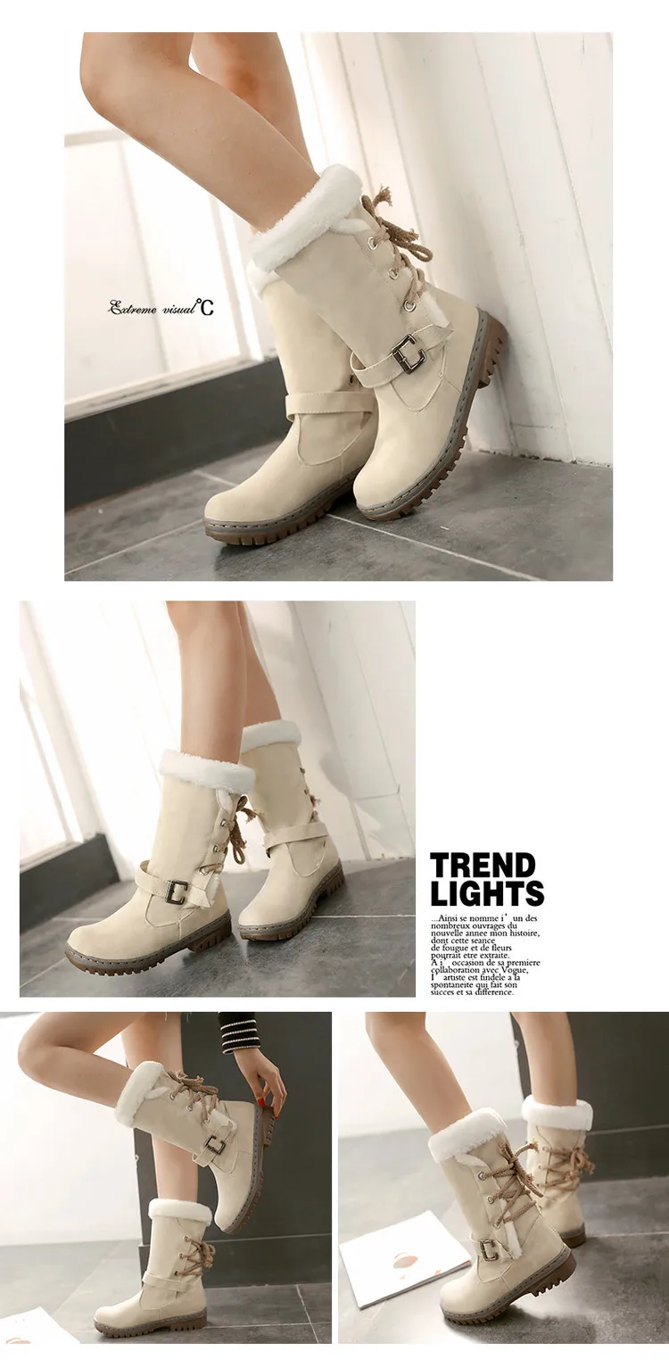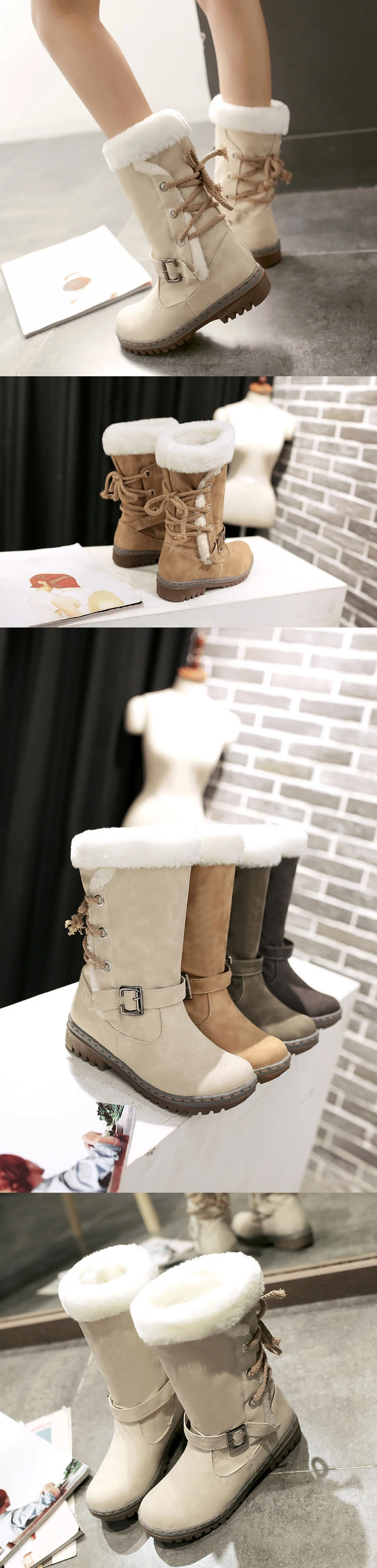 Wholesale Hot Sale Round Toe Snow Boots For Women Fashion High Quality Plus-Size Thick Warm Female Lace-Up Winter Knee Boots