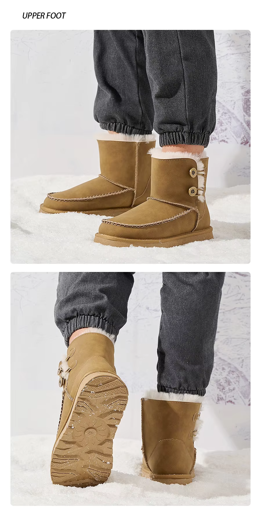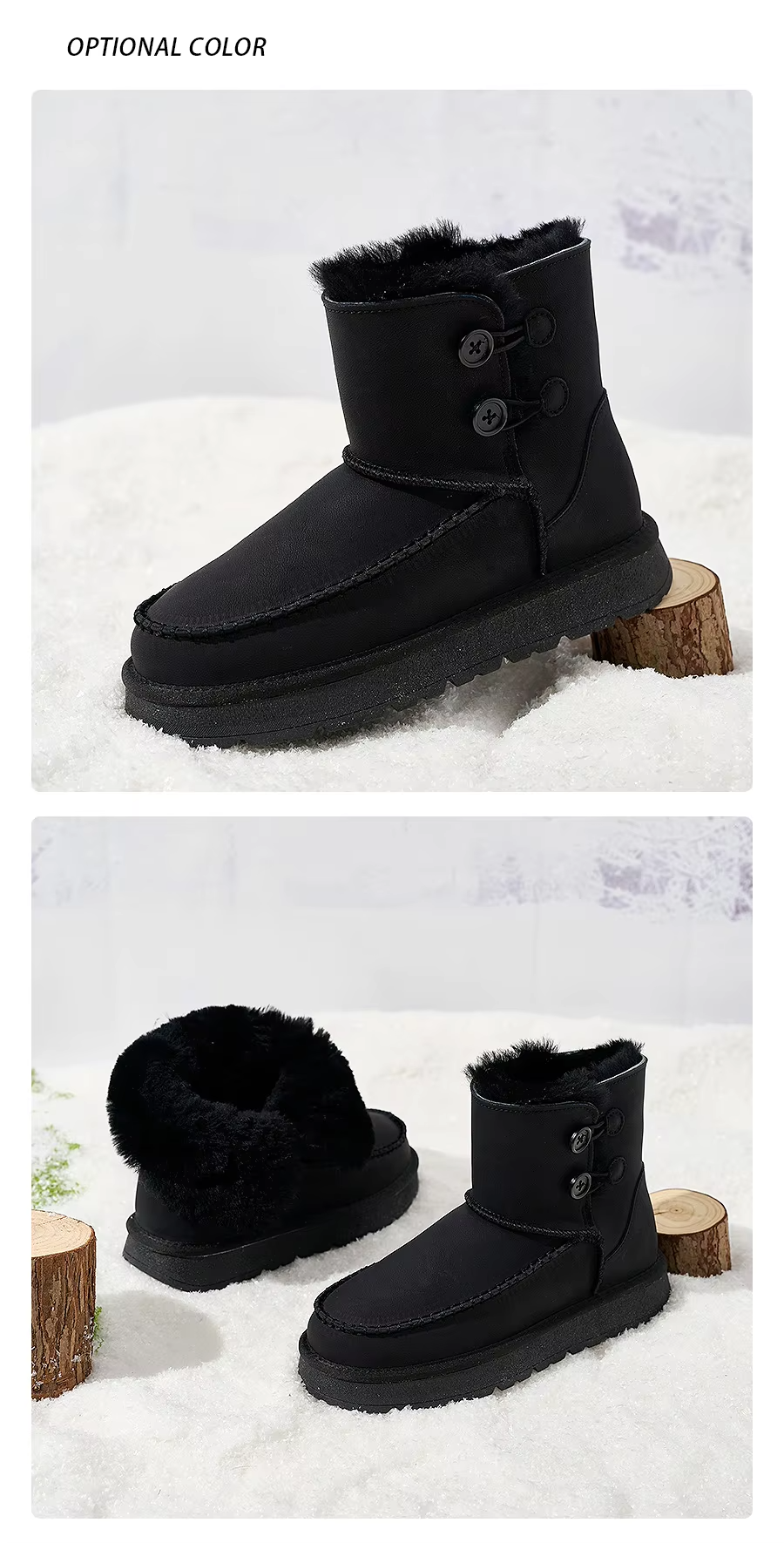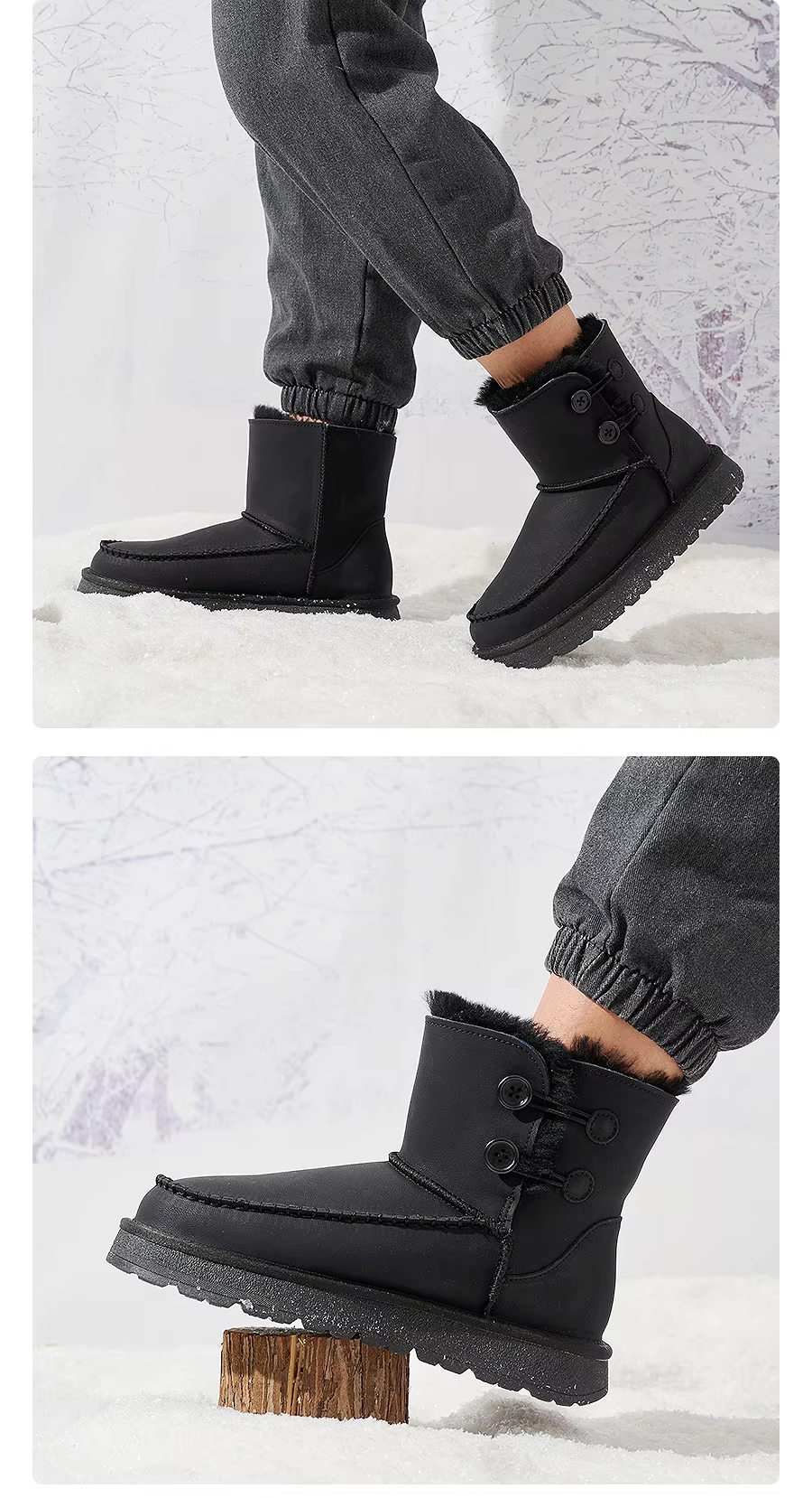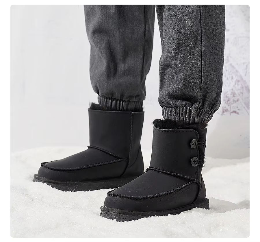 • Wholesale Men's Double Button Snow Boots 39-45 Large Size Leather Warm Winter Boots Non-Slip Thick Sole Casual Outdoor Footwear