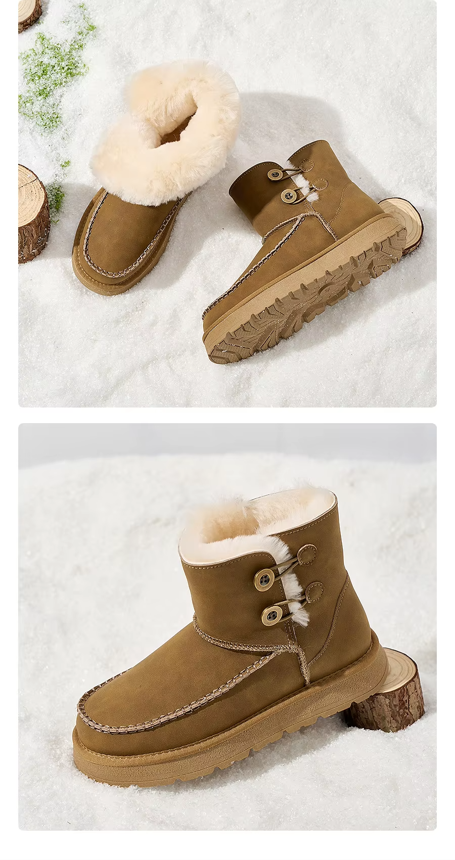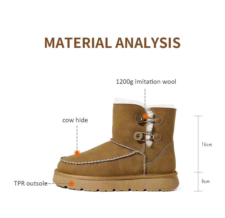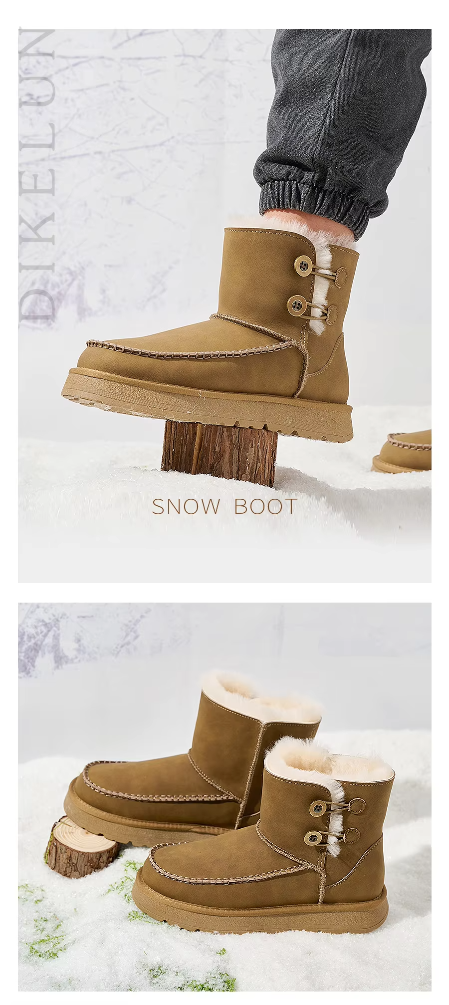 • Wholesale Men's Double Button Snow Boots 39-45 Large Size Leather Warm Winter Boots Non-Slip Thick Sole Casual Outdoor Footwear