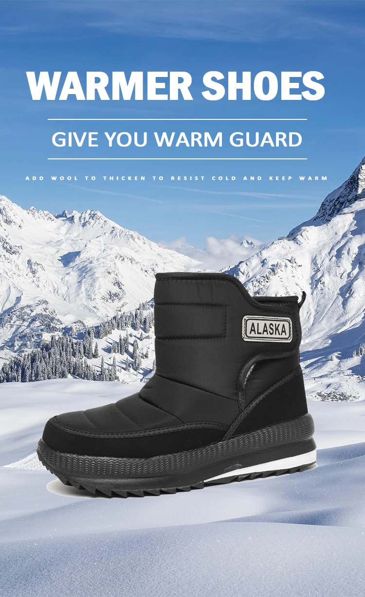 Wholesale New Winter Plush Casual Comfortable Anti-slip Snow Boots Fashion Thick Soles Light Black Snow Shoes