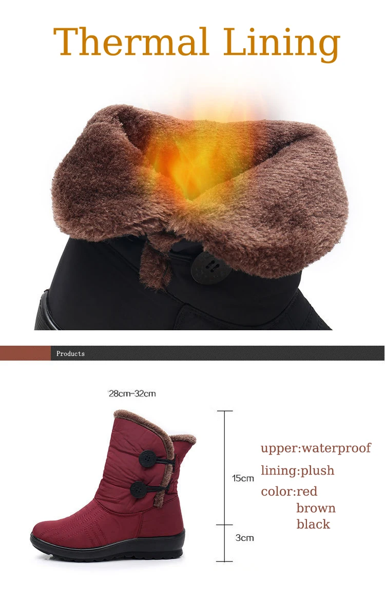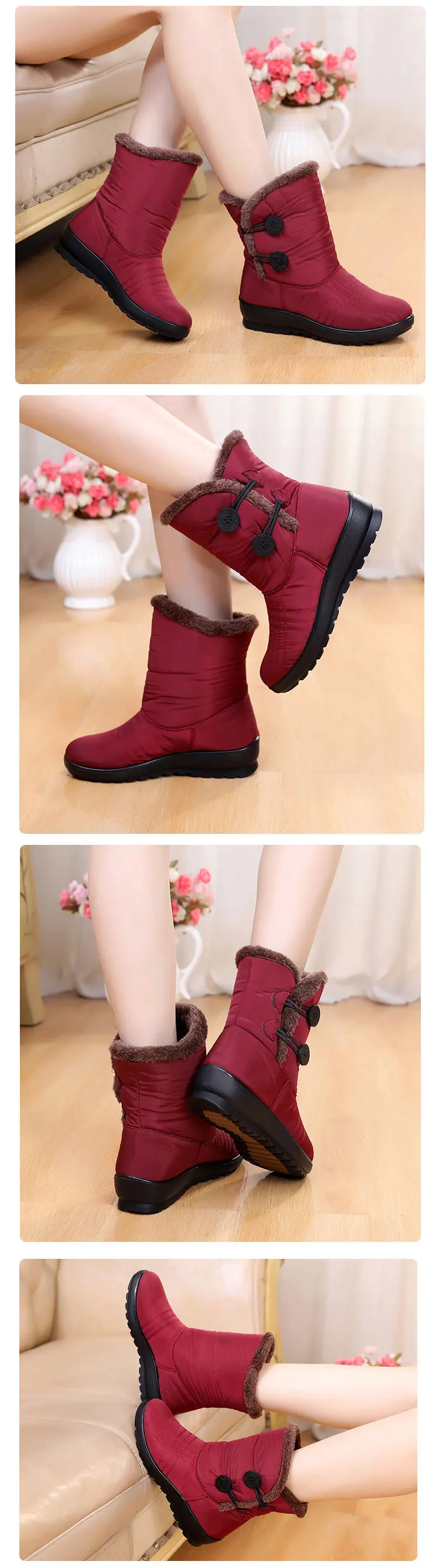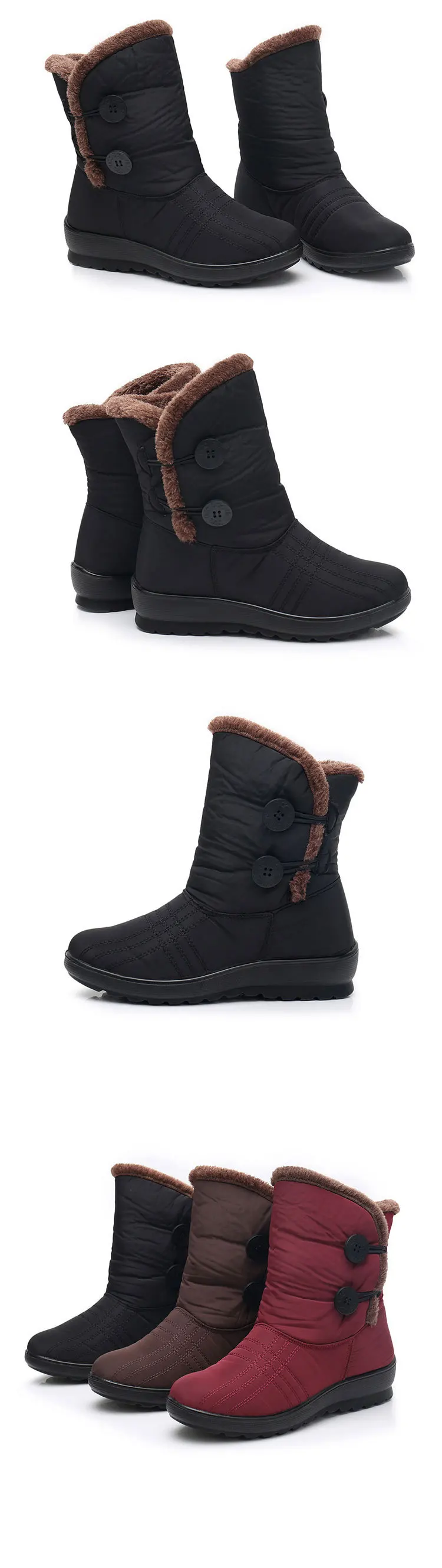 • Wholesale Women Short Fluff Waterproof Winter Boots Anti-slip Flat Bottom Large Size Soft Sole Ladies Snow Boots