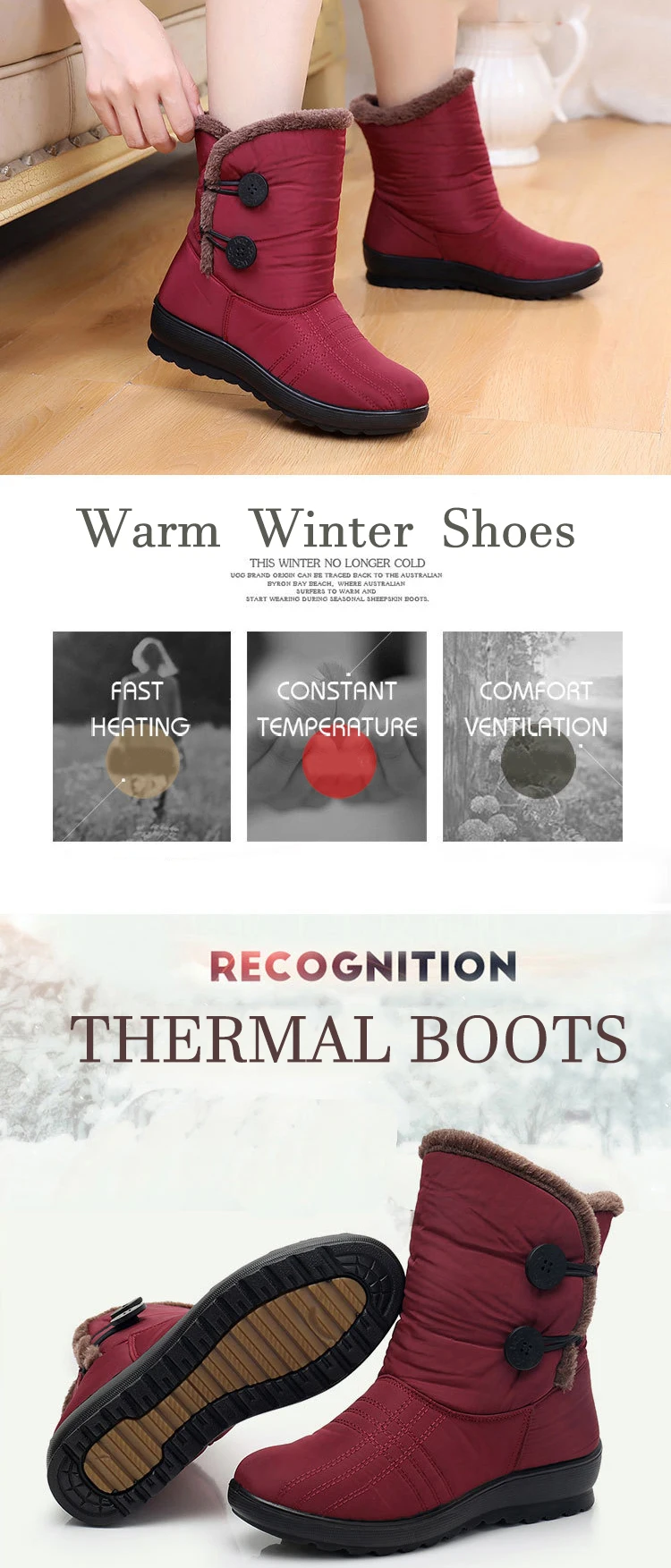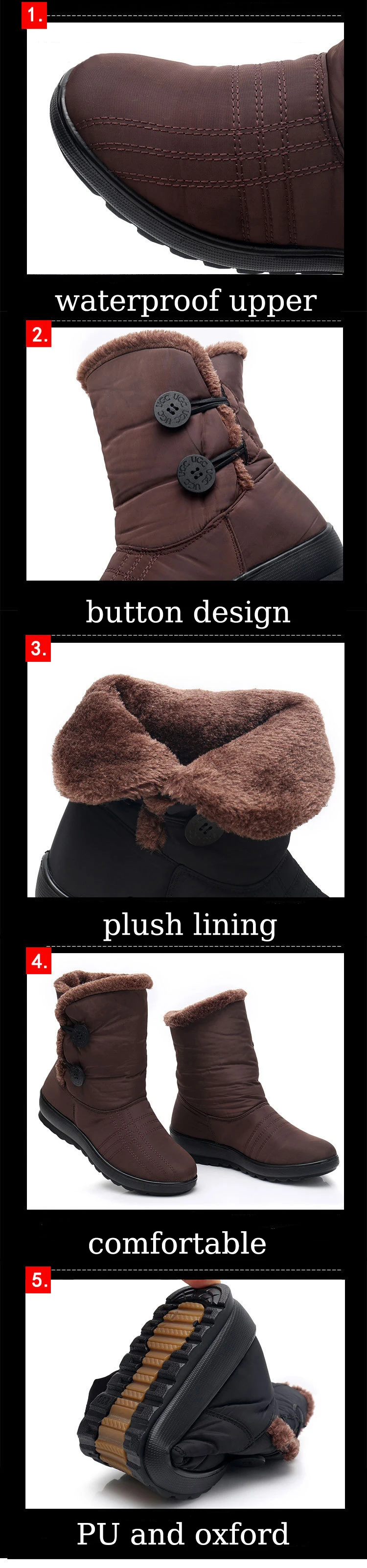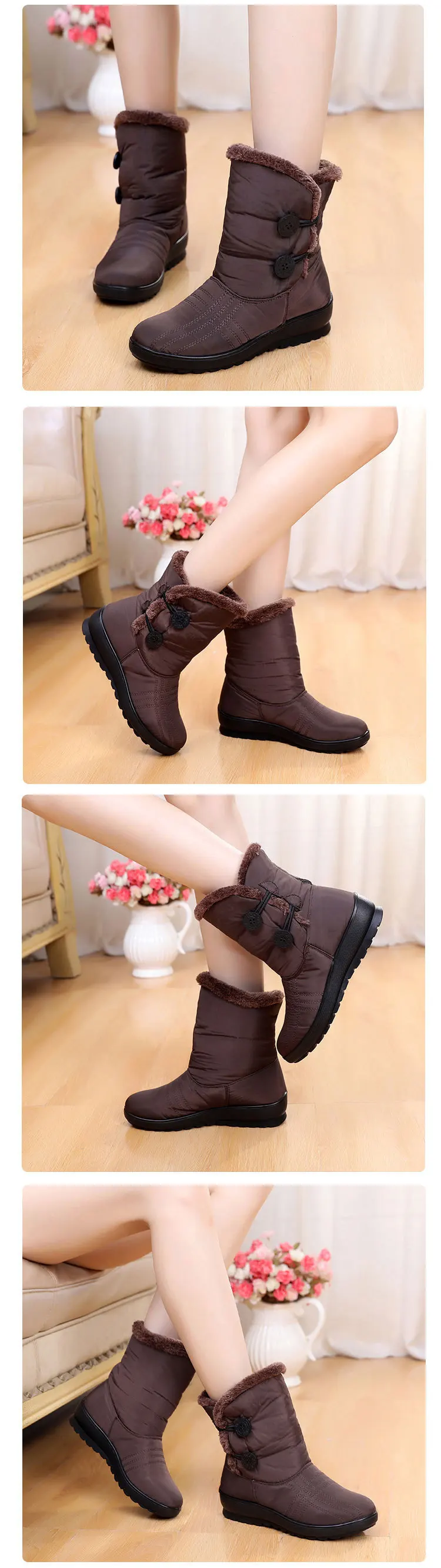 • Wholesale Women Short Fluff Waterproof Winter Boots Anti-slip Flat Bottom Large Size Soft Sole Ladies Snow Boots
